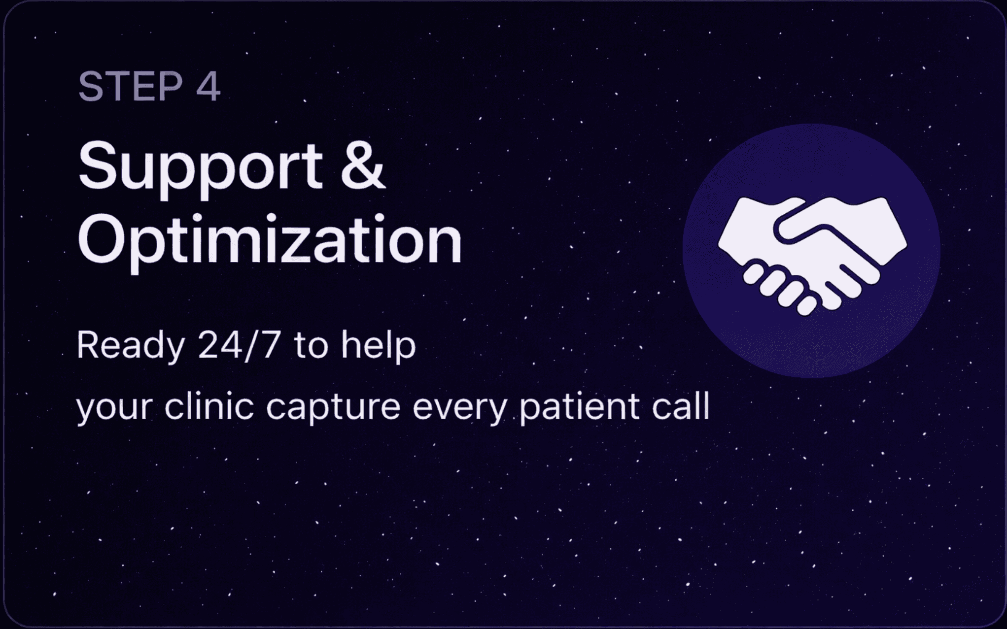 A simple done-for-you setup that connects directly to your clinic’s phone line and booking system.
